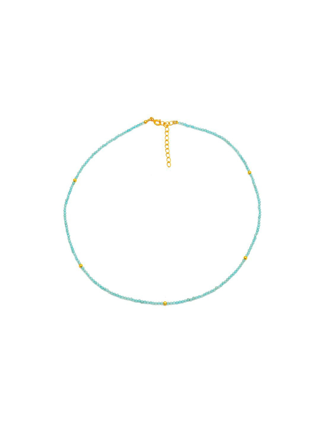 Choker de plata de ley bañado en oro con piedra mineral Apatito. Es ajustable.