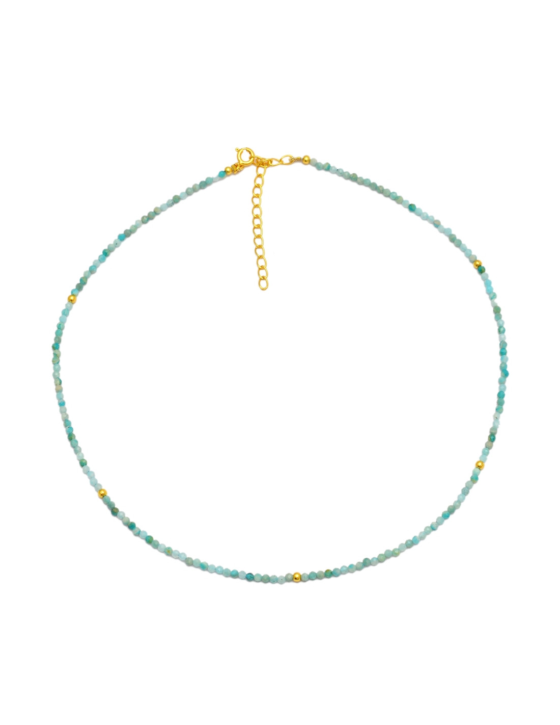 Choker Mineral Material: Plata de ley 925 Acabado: Baño en Oro de 18k Longitud: Cierre ajustable de 36cm a 36+5cm Piedra: Apatito Cierre: Reasa Medidas de Colgante: 2 mm
