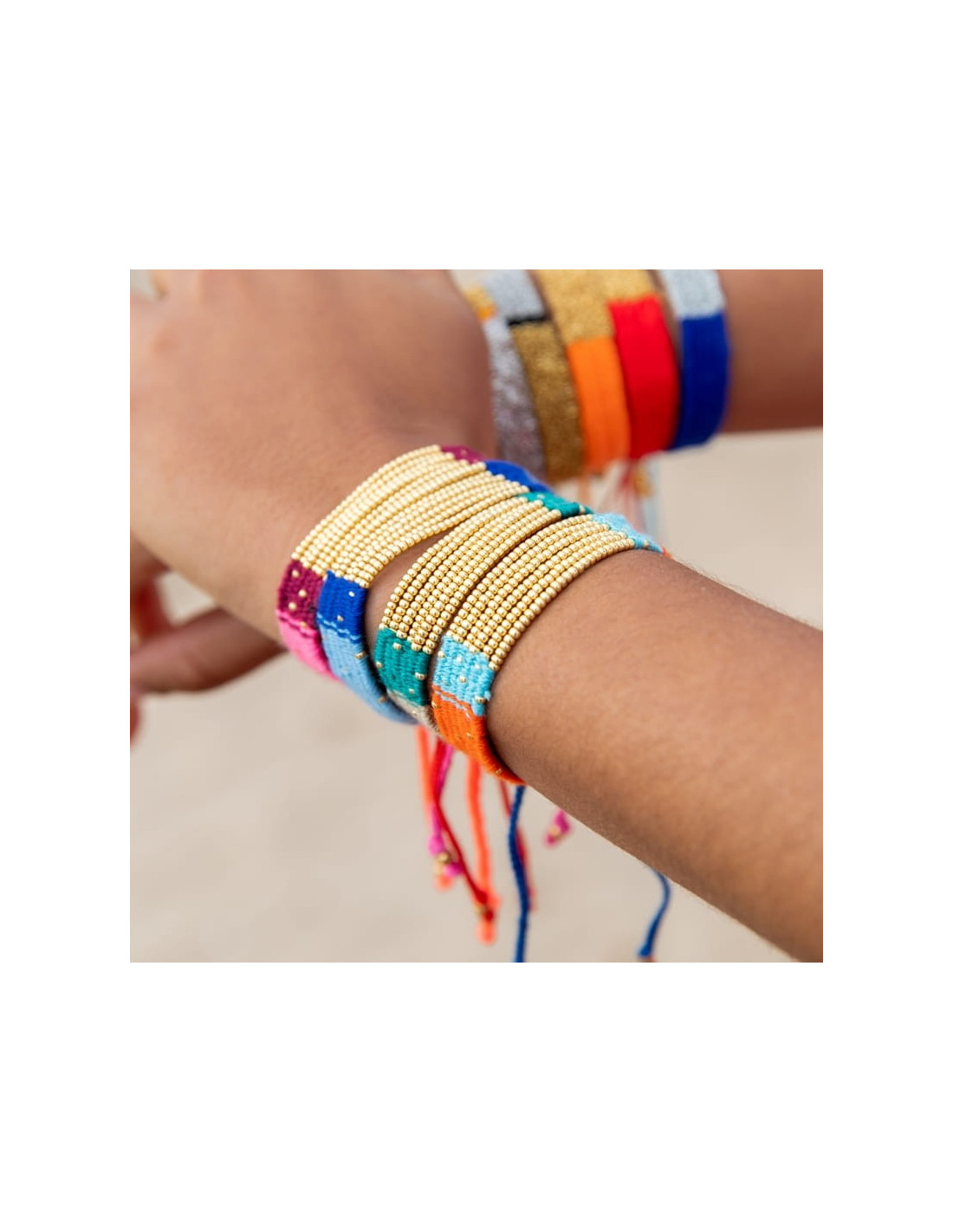 Pulsera ajustable de lana con detalle de cuentas de cristal japonés tipo miyuki. Dimension 10mm