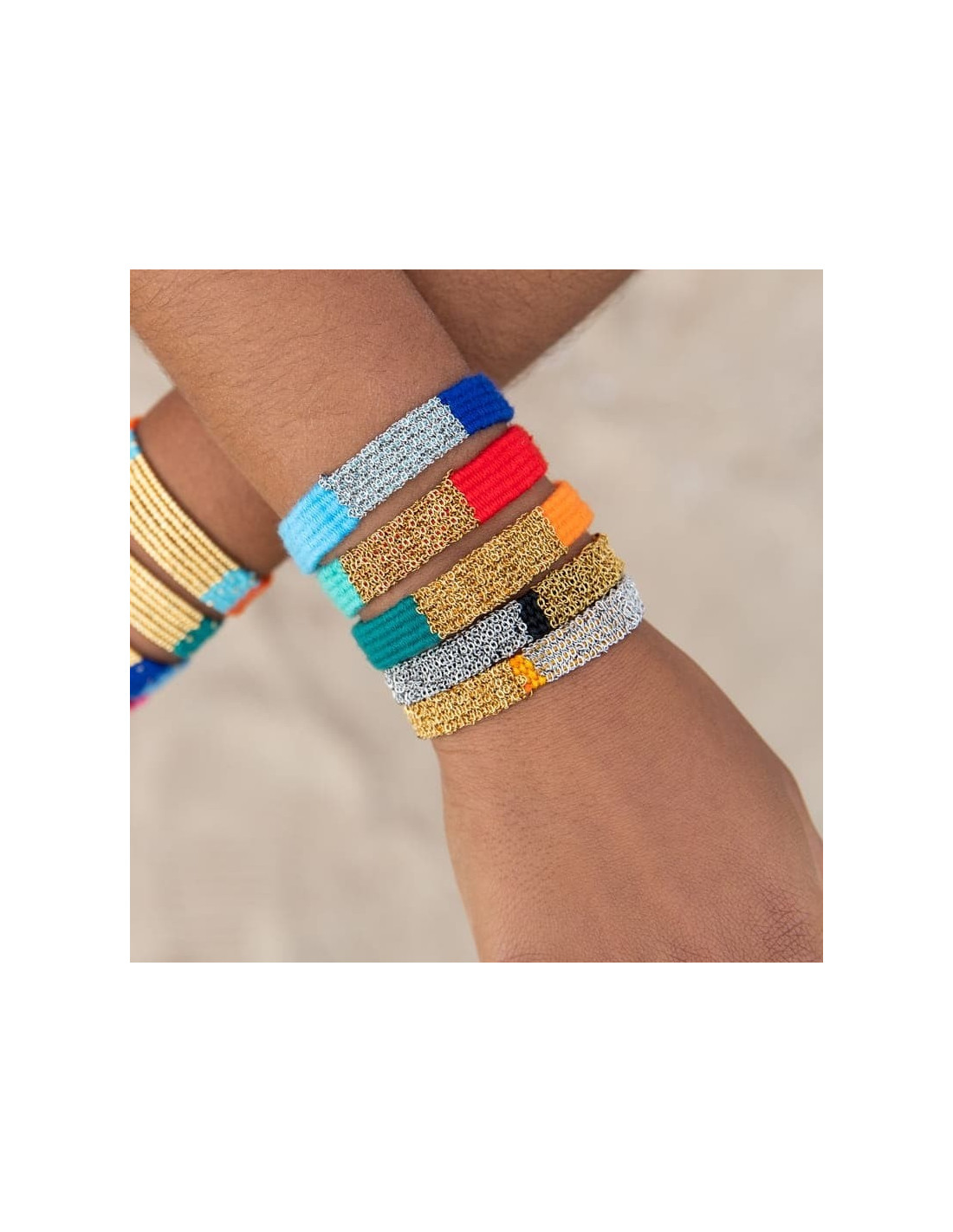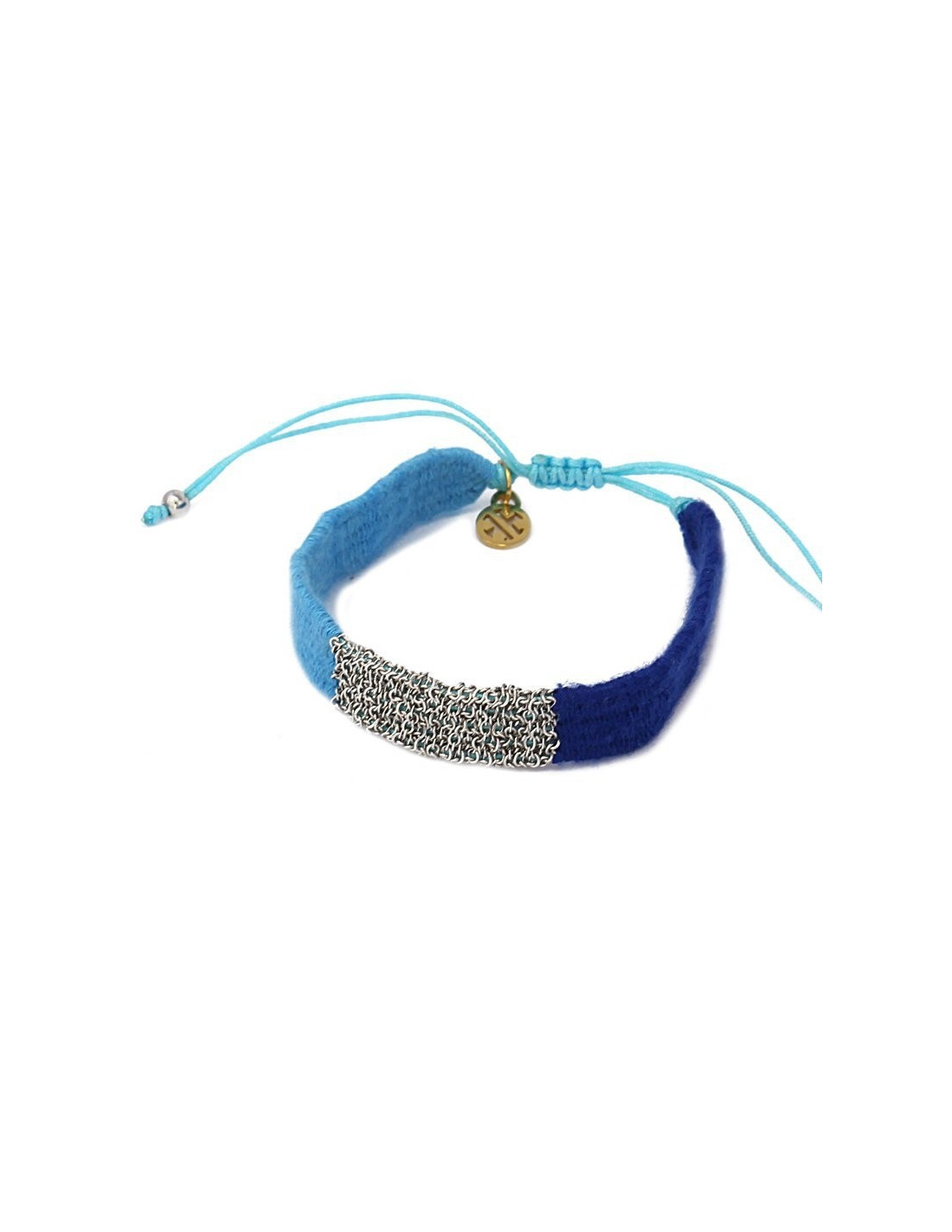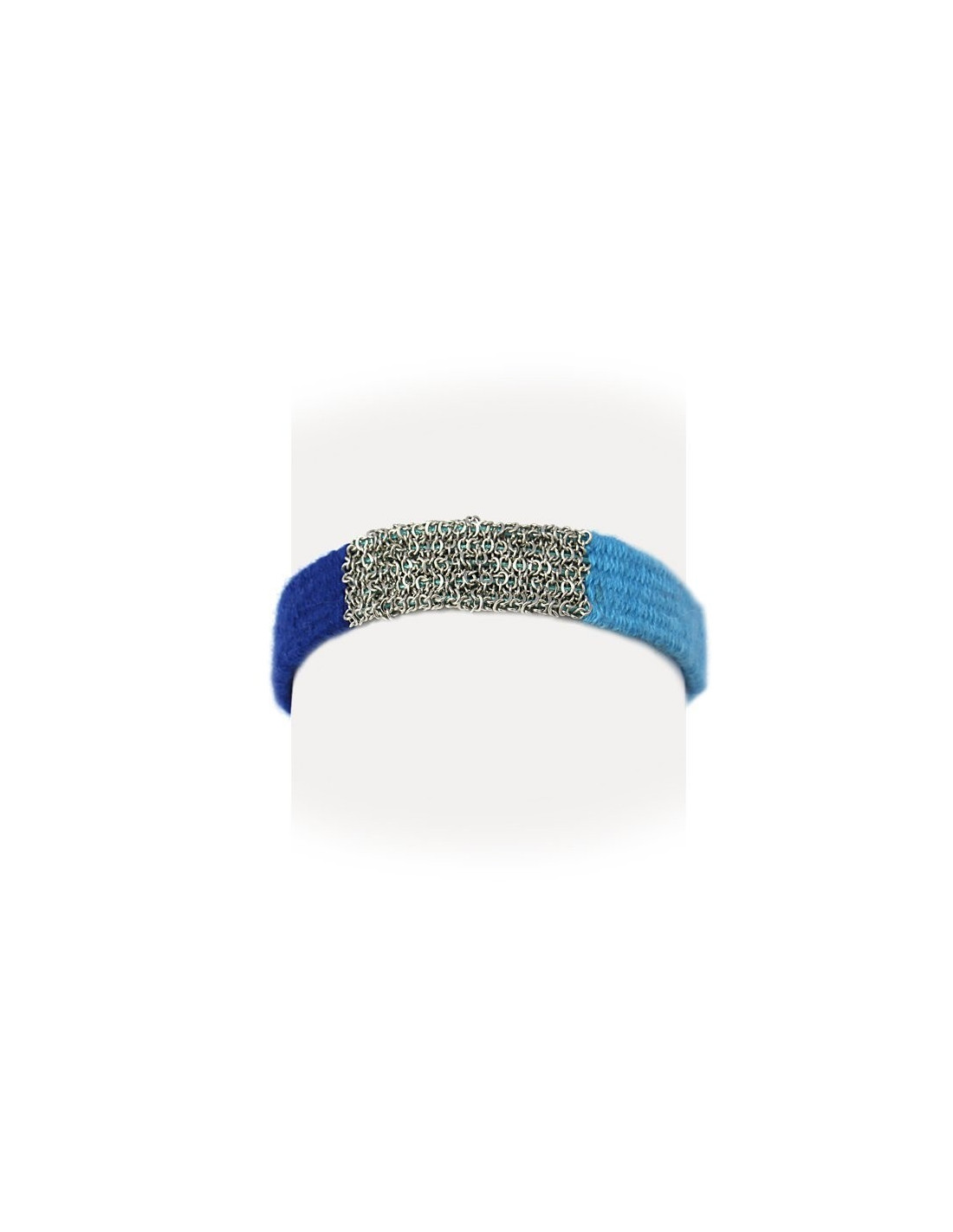 Pulsera ajustable de lana con detalles tipo malla de acero. Dimension 10mm
