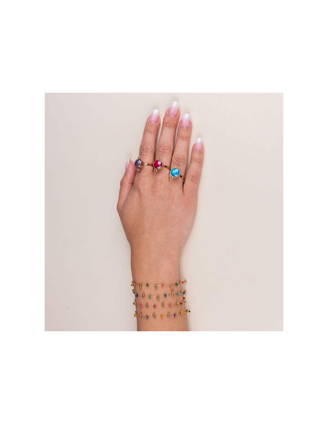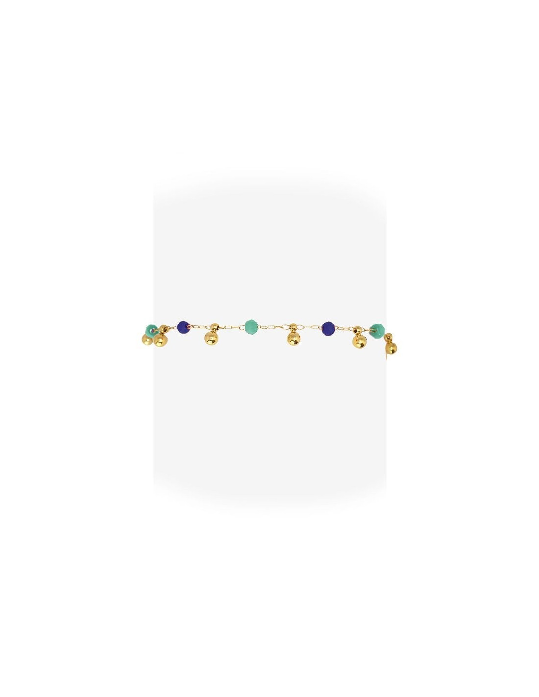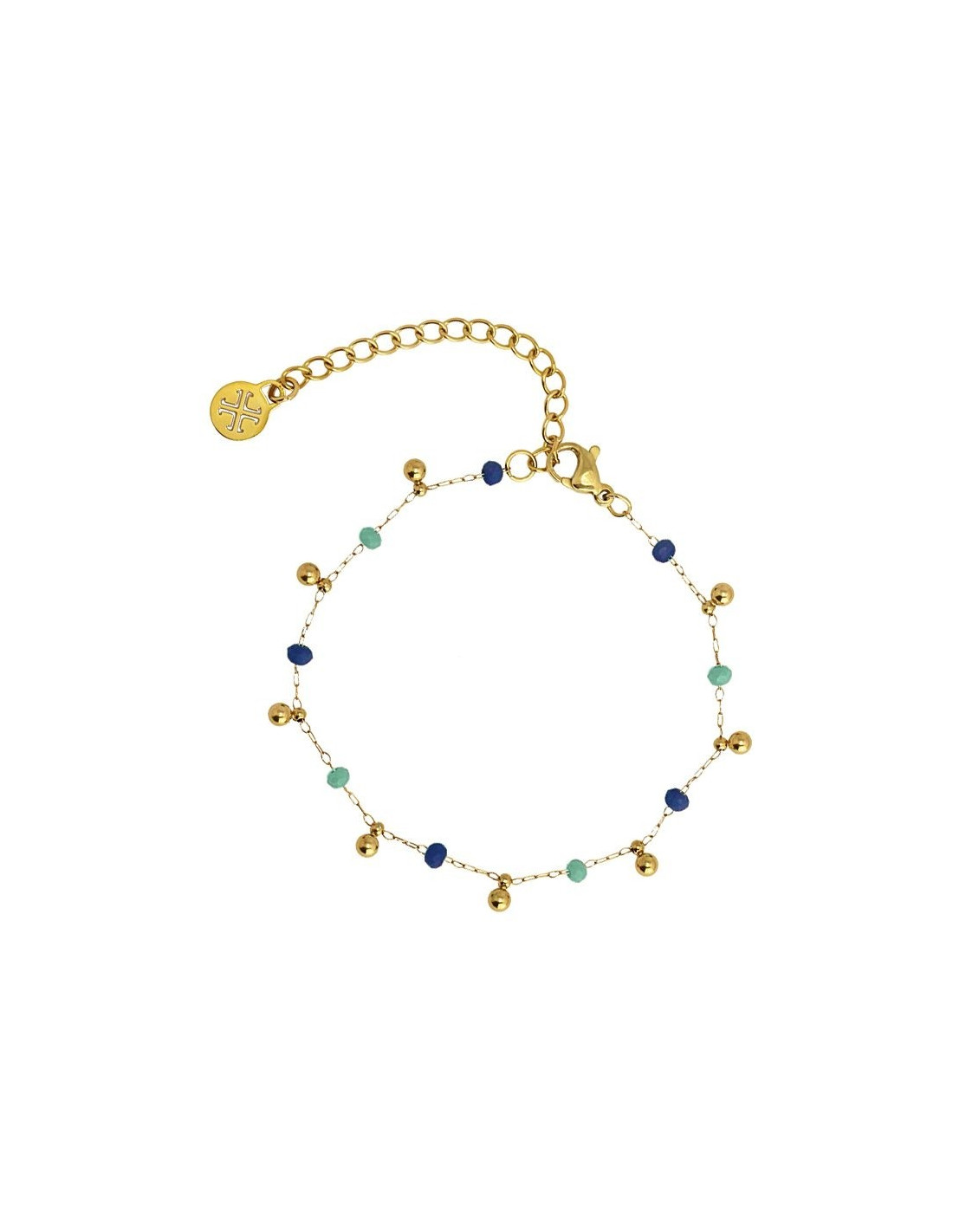 Pulsera de cadena fina y abalorios de en forma de bolitas de acero y cristal multicolor. Una pieza pensada para dar color y alegría a tus looks de diario, que puedes elegir entre cuatro combinaciones tonalidades tendencia.